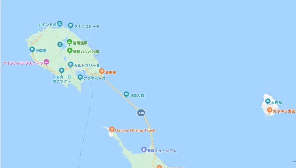 池間島の東側に位置しており、宮古島本島からは約4kmのところにある島です。